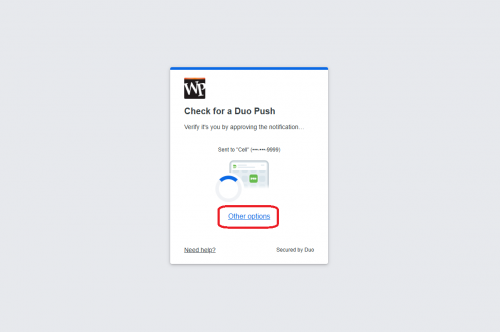 Reactivating your Duo App will follow the above instructions, however if you do not have your previous device, or if the App has stopped working, you will need to request a Duo Temporary Passcode from the Login Assistance page (This is the "Forgot Account/Password or Need Login Help? button on the WPconnect login page) and login to the Duo Device Management page directly.