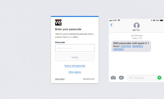If an employee is unable to utilize the Mobile App, they will still be able to register a Generic Mobile phone number to receive text message passcodes or phone calls, or a Landline to receive calls. These devices are registered and managed through WPconnect.