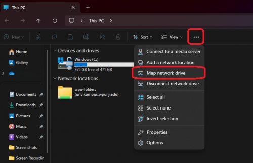 - Click "Map Network Drive"