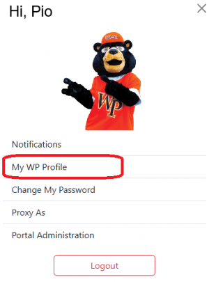 - Users can now see their Self-Service Banner PIN in WPConnect by going to My Profile (in the drop-down menu) by clicking the icon that looks like a person.